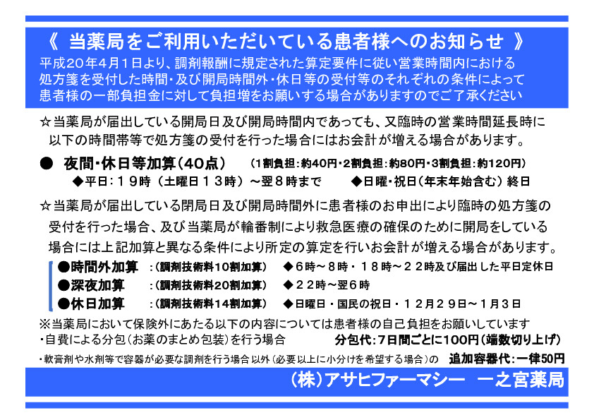 医療情報ネット(ナビイ) 株式会社アサヒファーマシー一之宮薬局