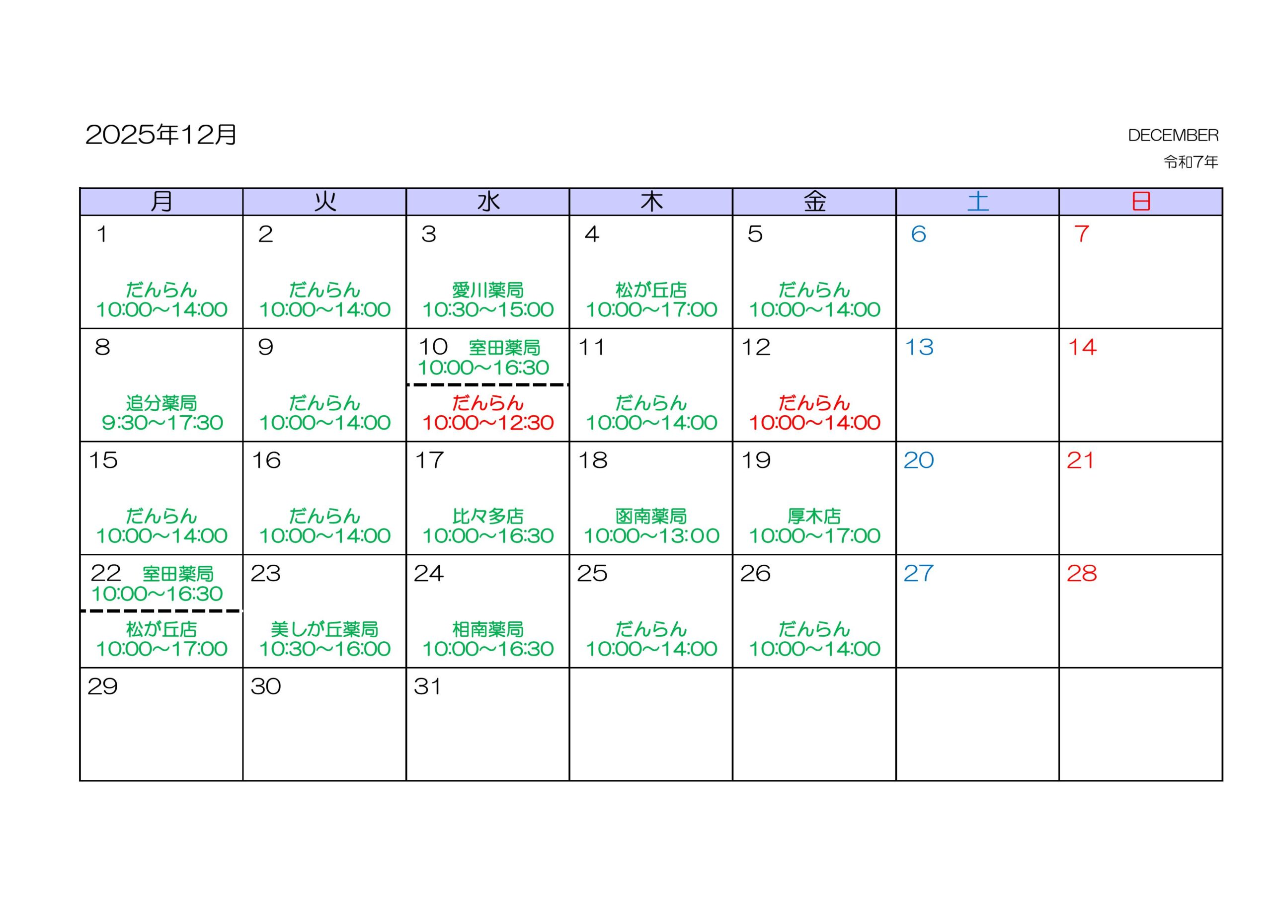 12月12日(金) だんらん 10:00~12:30 → だんらん 10:00~14:00